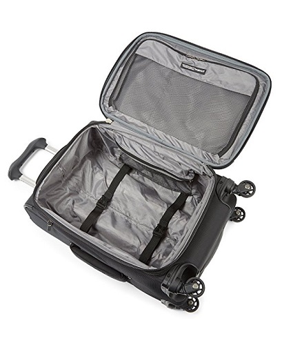 The Rollaboard wheels of the Maxlite 4 are much bigger than in most four-wheeled versions making it easier to pull on a rough terrain like a gravel road or in a bumpy parking lot. The bag also has a top and side handles making it easier to tackle a flight of stairs or remove it from an overhead storage compartment. The handles are covered with a gel-like padding which enhances the grip. The one disadvantage of the side carry handle is that it gets caught up occasionally on the edges of the airline seats when you are pulling it down the aisle.